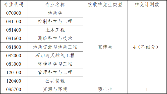 二、接收推免生学科专业及计划