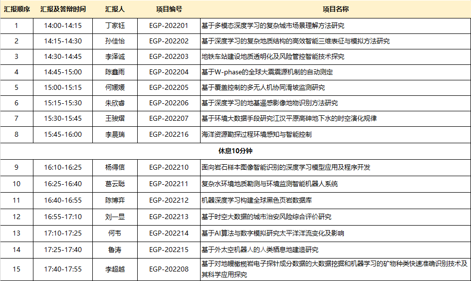 报告安排: