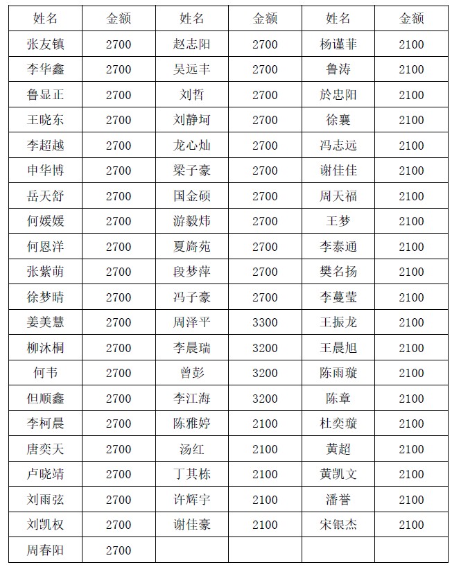 2022-2023学年国家助学金评审结果公示