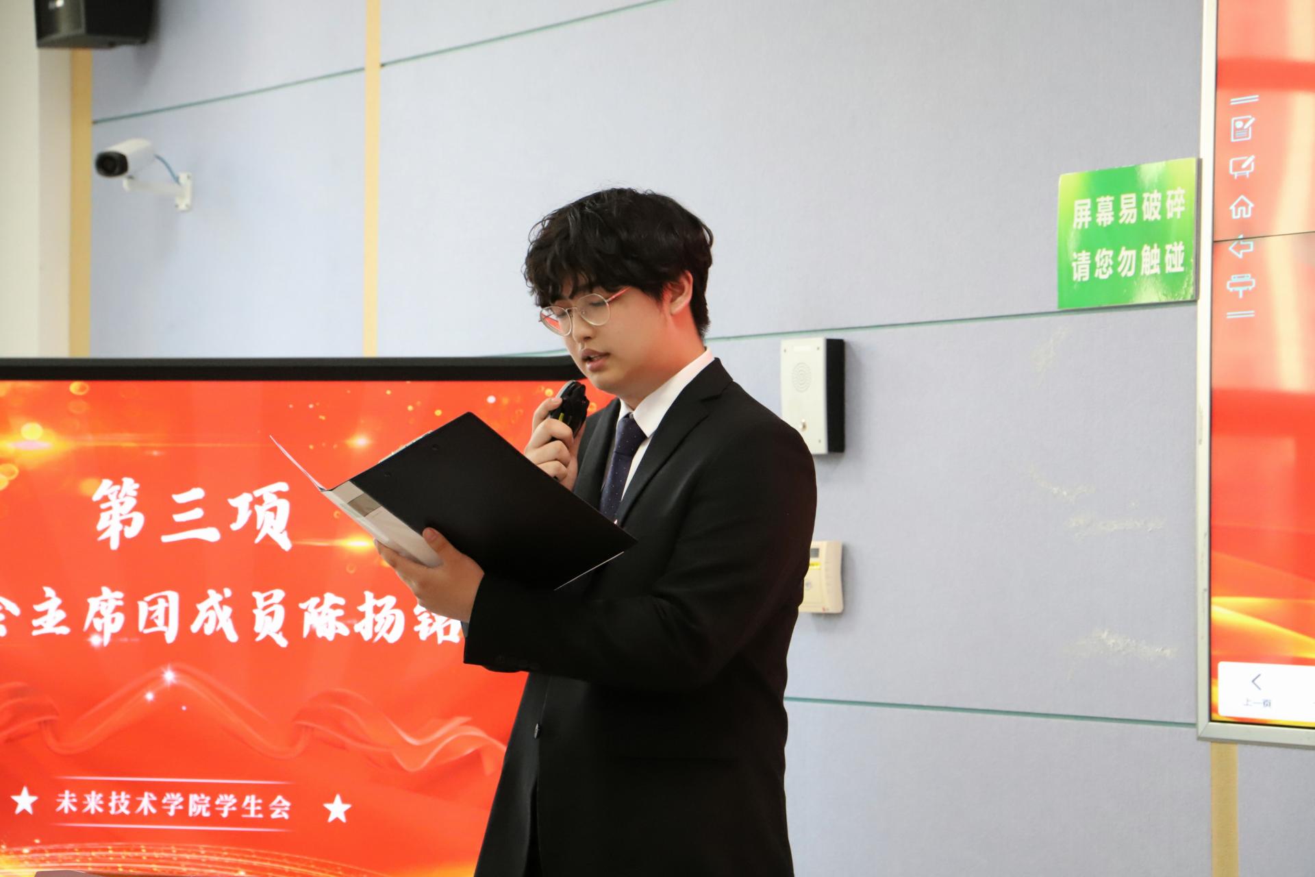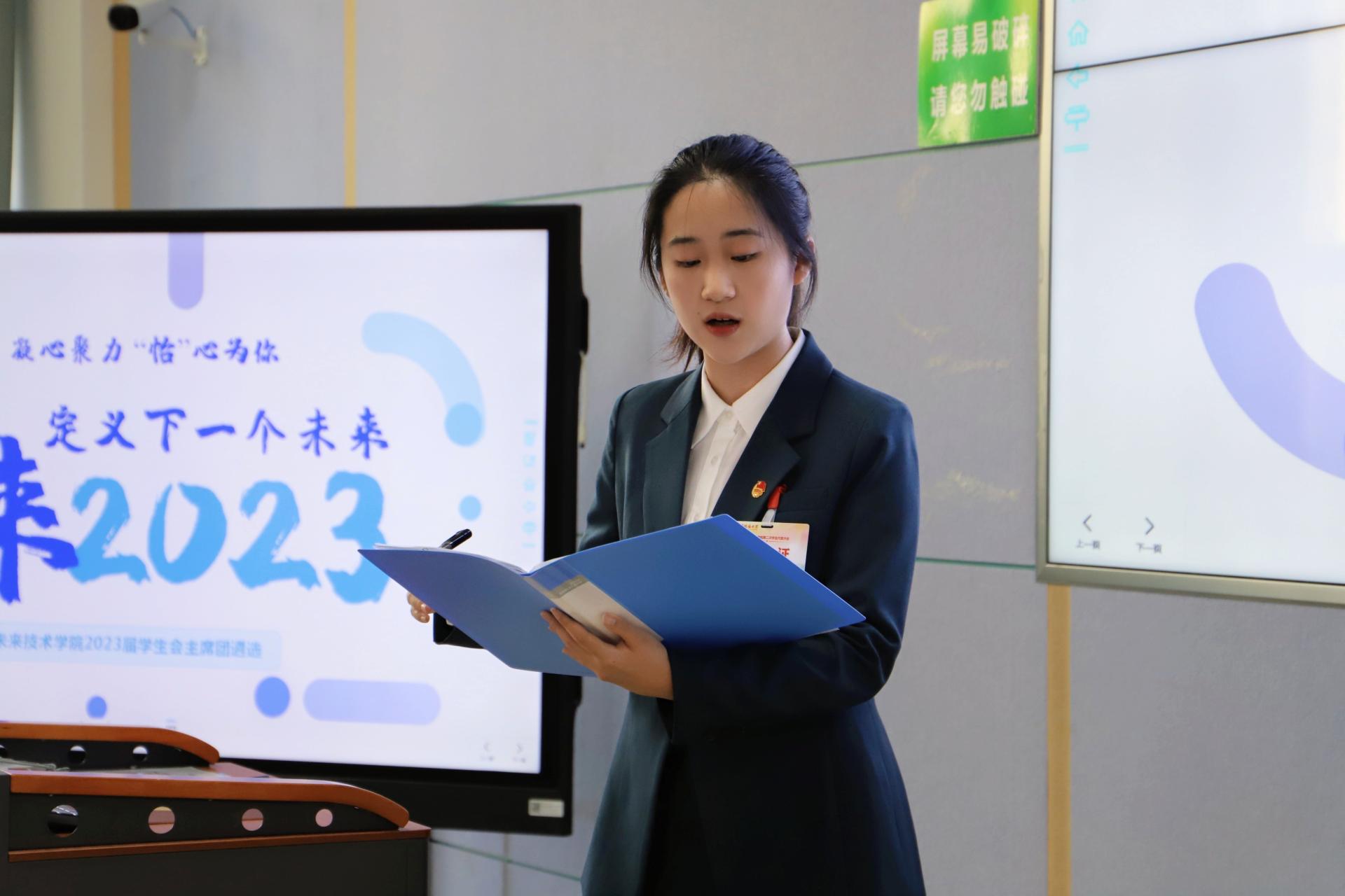 随后2023届员工会主席团候选人朱欣睿、孙佳怡、陈其康、谢正扬四位同学依次进行竞选演讲,阐述了自己的竞选优势、工作理念与工作构想,与会评委和代表对候选人的演讲进行点评并提问,现场气氛十分热烈。
