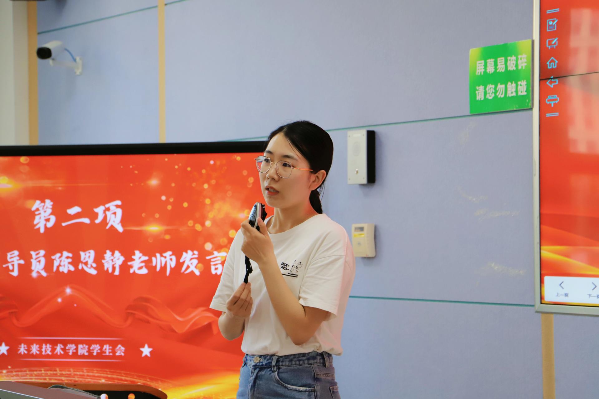 公司辅导员陈思静发言。她表达了对首届员工会全体工作人员的感谢,同时也对新一届员工会建设和发展提出了期待,她希望每一位参加员工会的同学都能围绕服务与成长、友谊与真诚、责任与奉献,不断增长自己的能力和才干,同时为员工会发展与公司建设贡献青春力量。