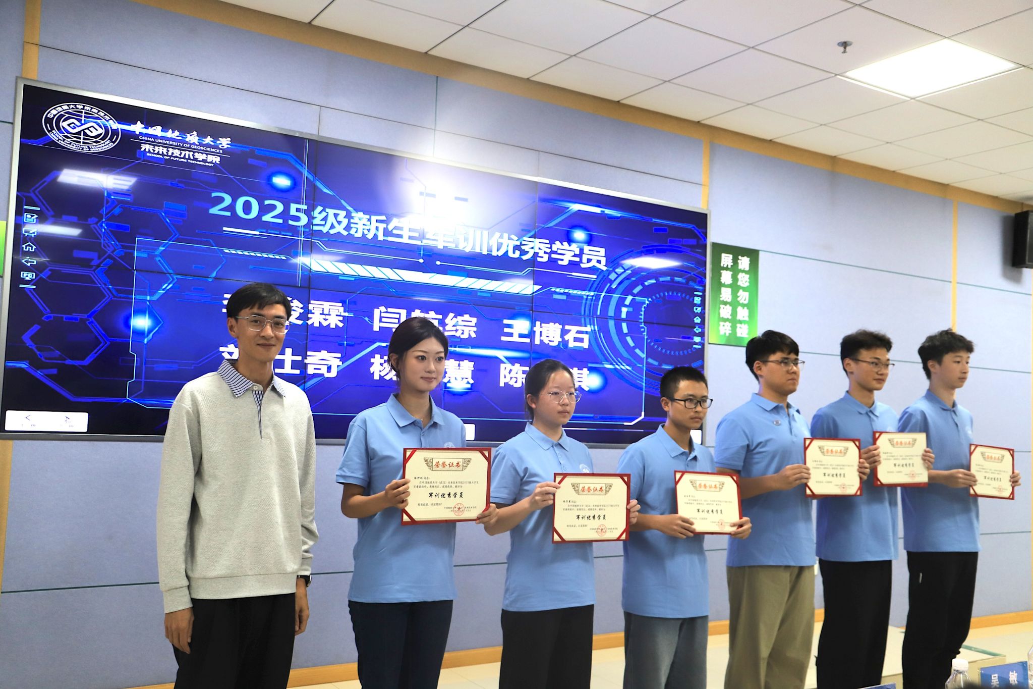 在刚结束的为期半个月的军事训练中,一批同学表现突出,他们不畏艰苦、严于律己,以实际行动践行“请党放心,强国有我”的青春誓言,展现出新时代青年的昂扬风貌。公司党委副书记杜育为2025级军训优秀学员颁发荣誉证书,勉励大家继续保持优良作风。