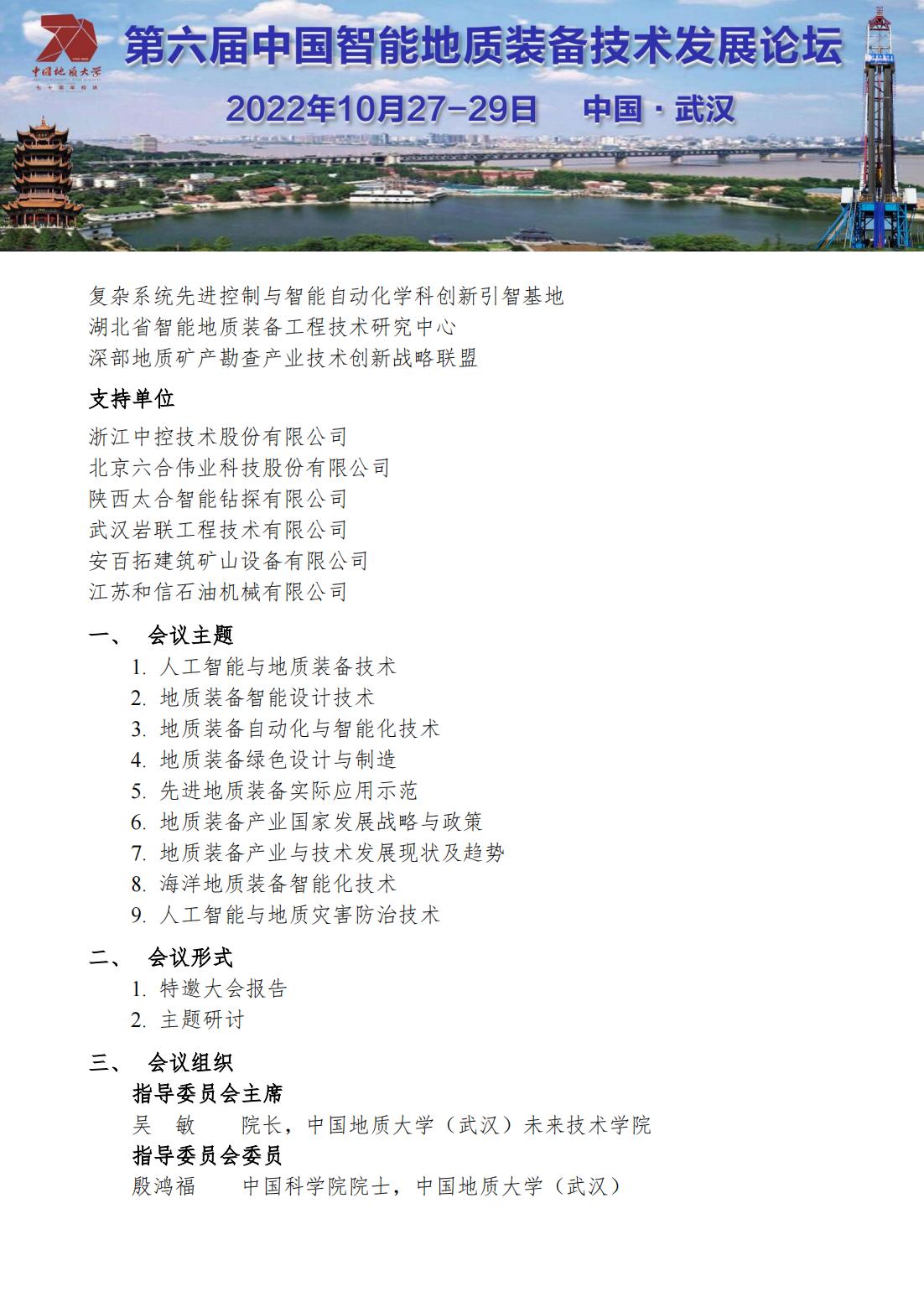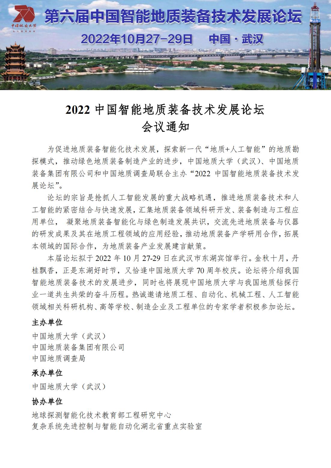 2022年中国智能地质装备技术发展论坛会议通知(2号通知)
